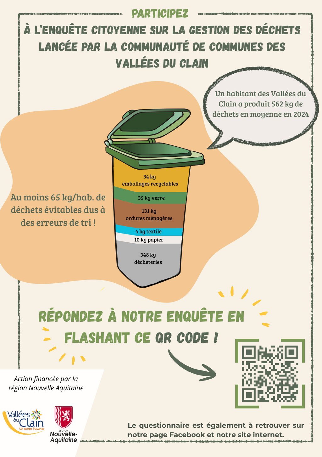 La communauté de communes des Vallées du Clain lance une enquête sous forme de questionnaire auprès des administré·es du territoire afin de recueillir des informations sur leurs comportements et pratiques de gestion des déchets.
