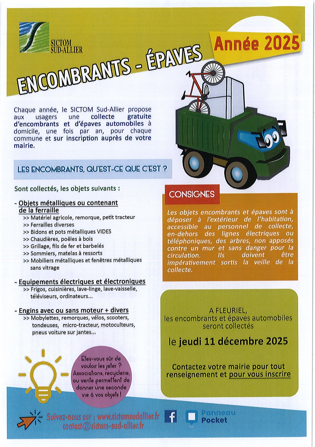 La prochaine collecte des encombrants et des épaves automobiles aura lieu le jeudi 11 décembre 2025.