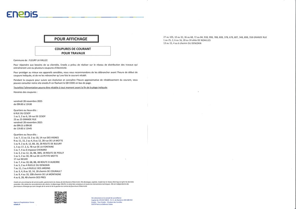 ENEDIS - COUPURES DE COURANT POUR TRA...