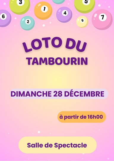 Loto du Tambourin le dimanche 28 décembre à partir de 16h00, salle de spectacle (Domaine du Bosquet)