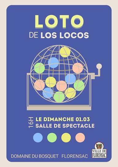 Loto organisé par l'association Los Locos le dimanche 1er mars 16h à la salle de spectacle. (Domaine du bosquet)