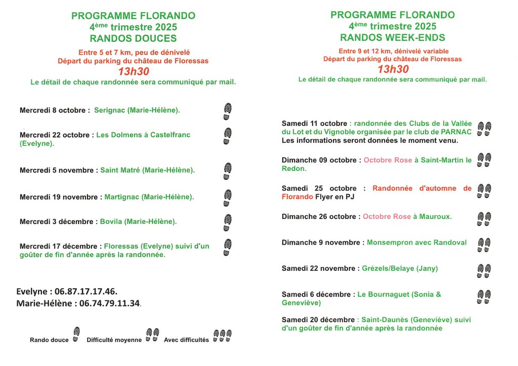 FLORANDO PROGRAMME 4ème trimestre 2025