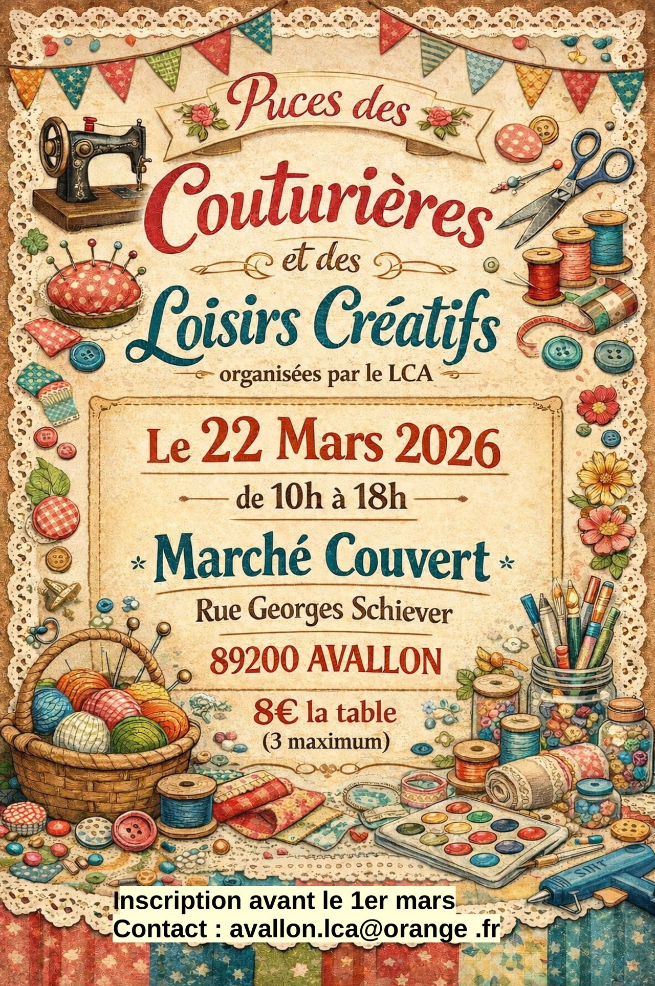L'association Loisirs et Culture en Avallonnais organise Les Puces des Couturières et des Loisirs Créatifs le dimanche 22 mars au Marché Couvert.