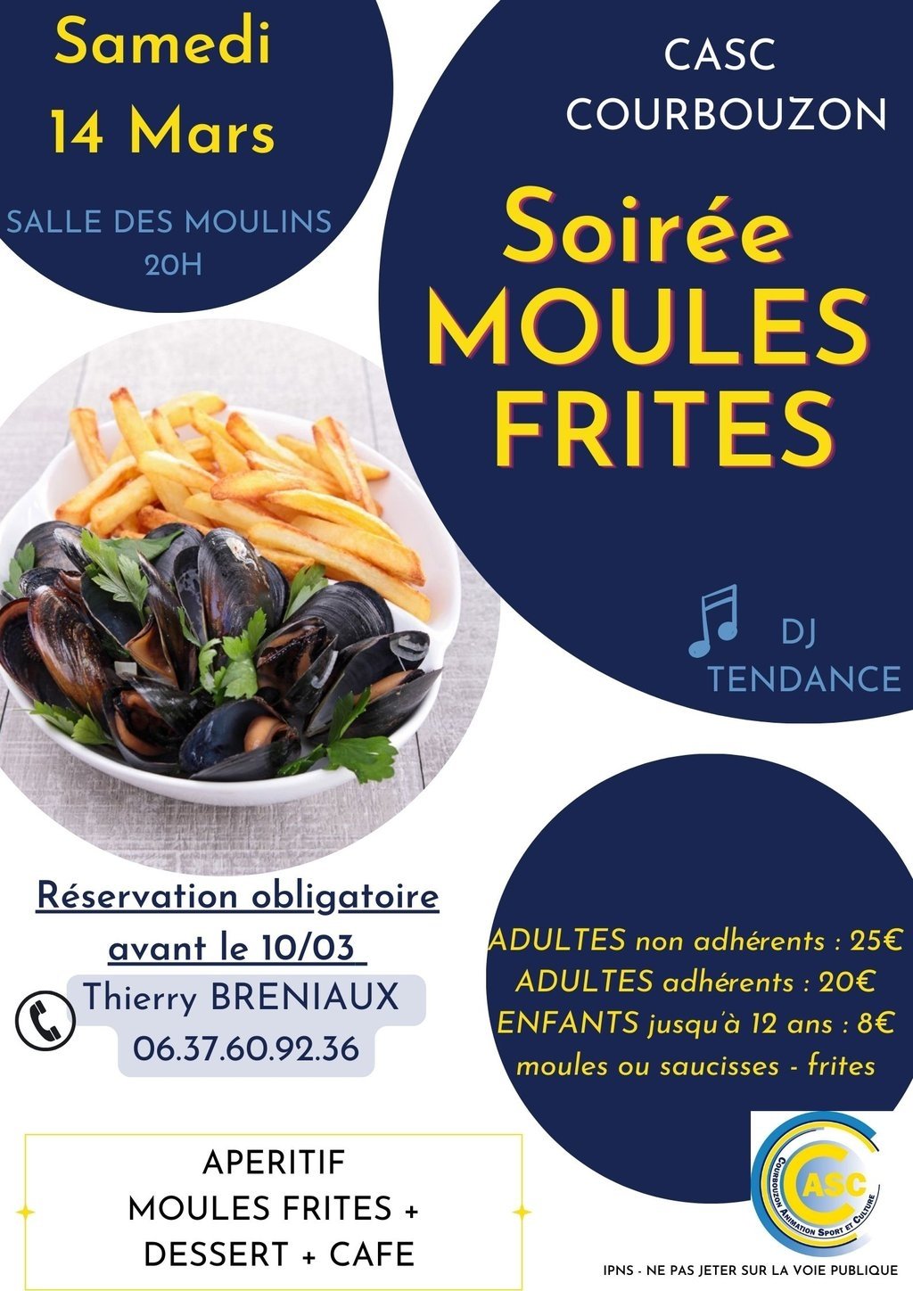 Les membres du CASC vous propose de se retrouver autour de leur traditionnelle Soirée Moules Frites ! 🍽