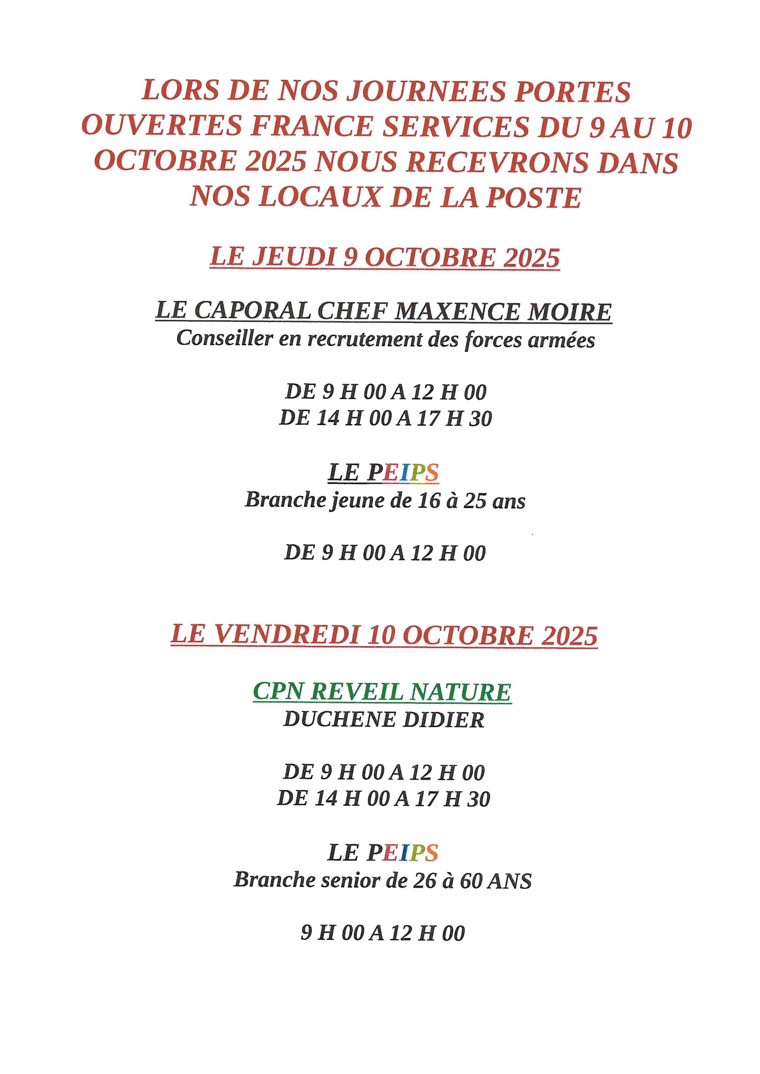 Journées France services du 9 au 10 octobre 2025 dans les bureaux de la Poste