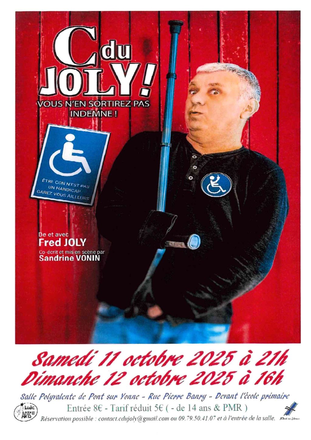 « C du Joly » est un seul en scène porté par Fred lui-même, qui nous fait partager des moments personnels et intimes. À la fois drôle, émouvant, sensible, et quelques fois déroutant, ce spectacle interroge aussi sur le regard des autres et la place du handicap dans la société.