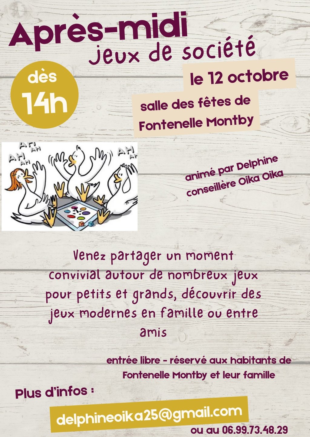 LE DIMANCHE 12 OCTOBRE "APRÈS-MIDI JEUX DE SOCIÉTÉ À FONTENELLE-MONTBY"