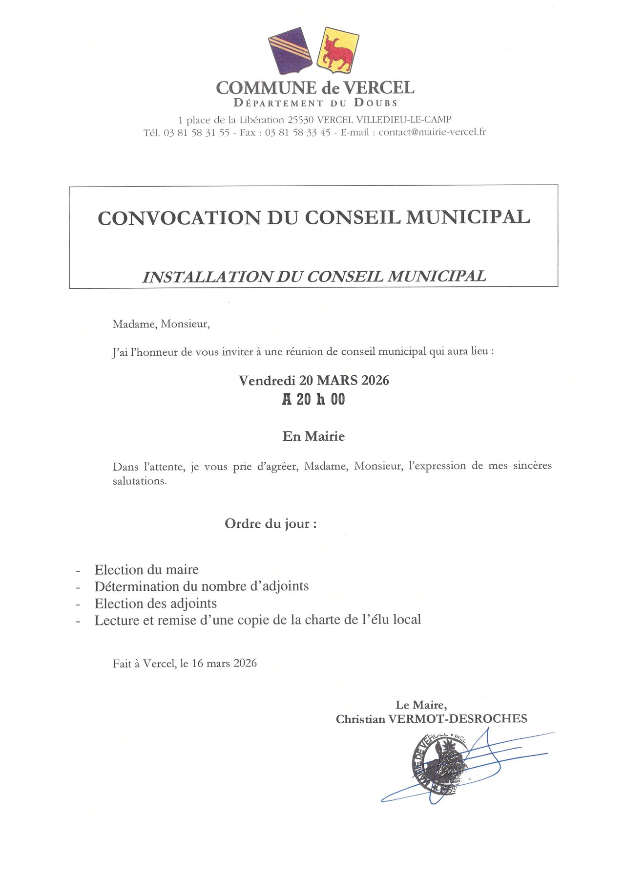 Convocation du conseil municipal