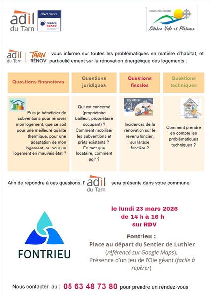Questions financières, questions juridiques, questions fiscales, questions techniques. Afin de répondre à ces questions l'Adil du Tarn sera présente dans votre commune.