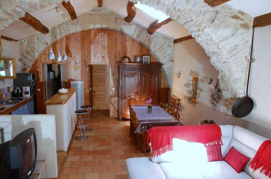 En rez-de-jardin : deux chambres (une pour deux personnes, l'autre pour trois), salle de jeux avec bibliothèque, salle de bain, wc. Chauffage électrique (90 kw par jour inclus dans le prix) et efficace poêle à bois (bois fourni gratuitement).