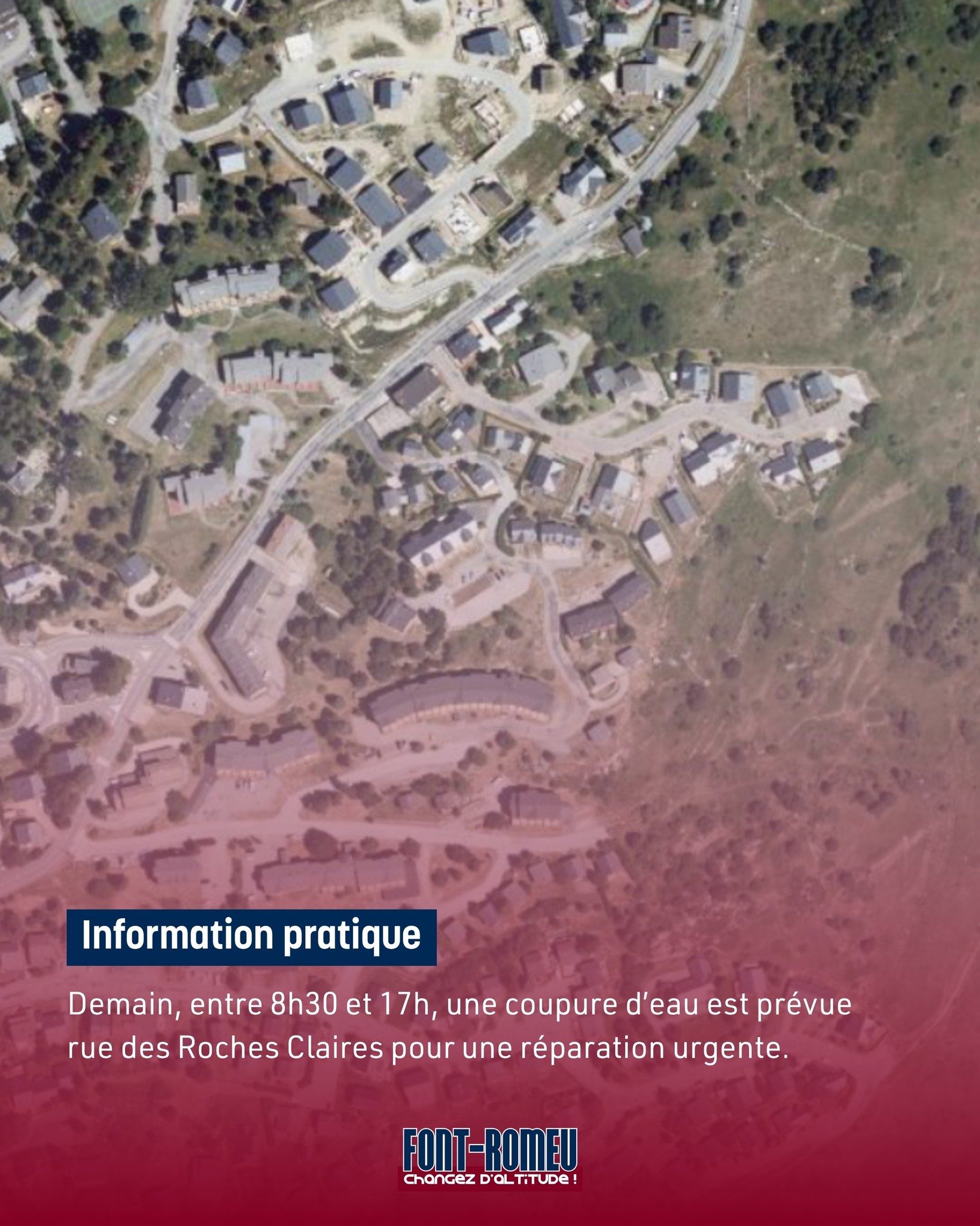 Nous vous informons qu'en raison d'une réparation urgente, la distribution de l'eau au robinet sera momentanément interrompue :