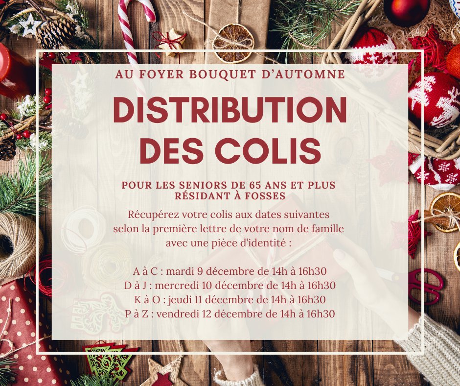 Pour les personnes de 65 ans et plus résidant à Fosses et ayant réservé leur colis auprès du Foyer Bouquet d’Automne.