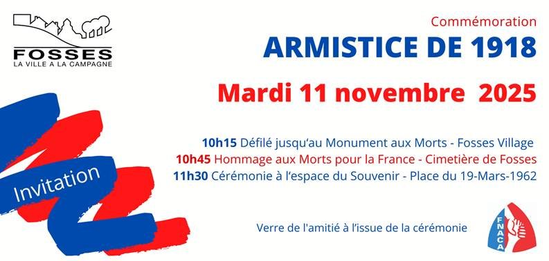La Ville de Fosses vous invite à venir participer aux cérémonies en hommage à celles et ceux qui ont donné leur vie pour la France.