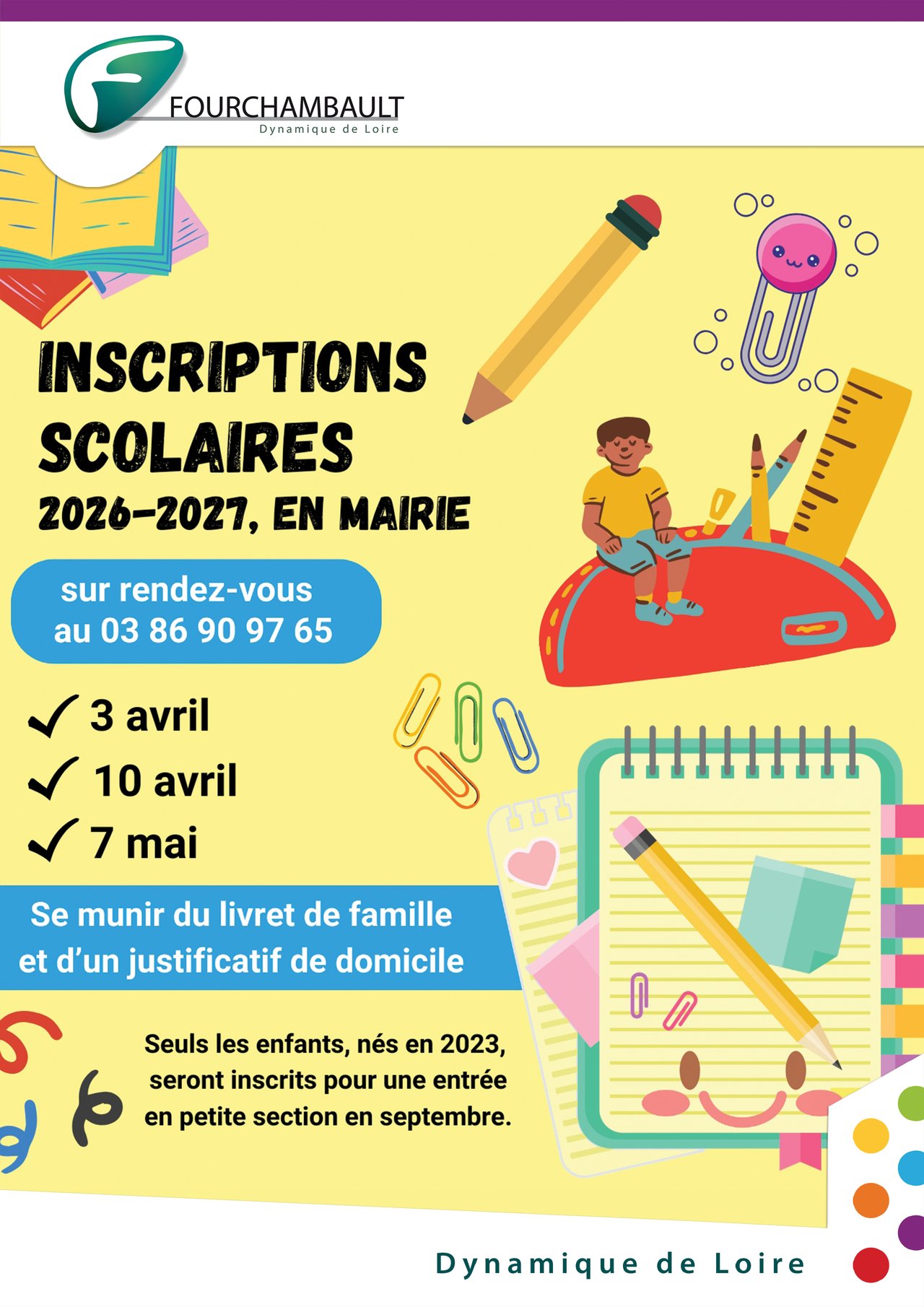 INSCRIPTIONS SCOLAIRES 2026-2027 À FOURCHAMBAULT !