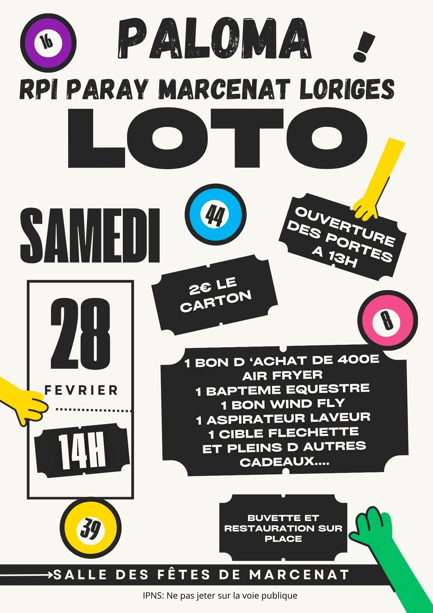 J-10 avant le grand jour - Loto des enfants organisé par PALOMA