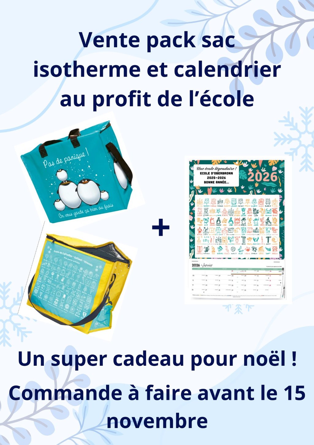 VENTE DE CALENDRIERS ET SACS ISOTHERMES AU PROFIT DE L'ÉCOLE