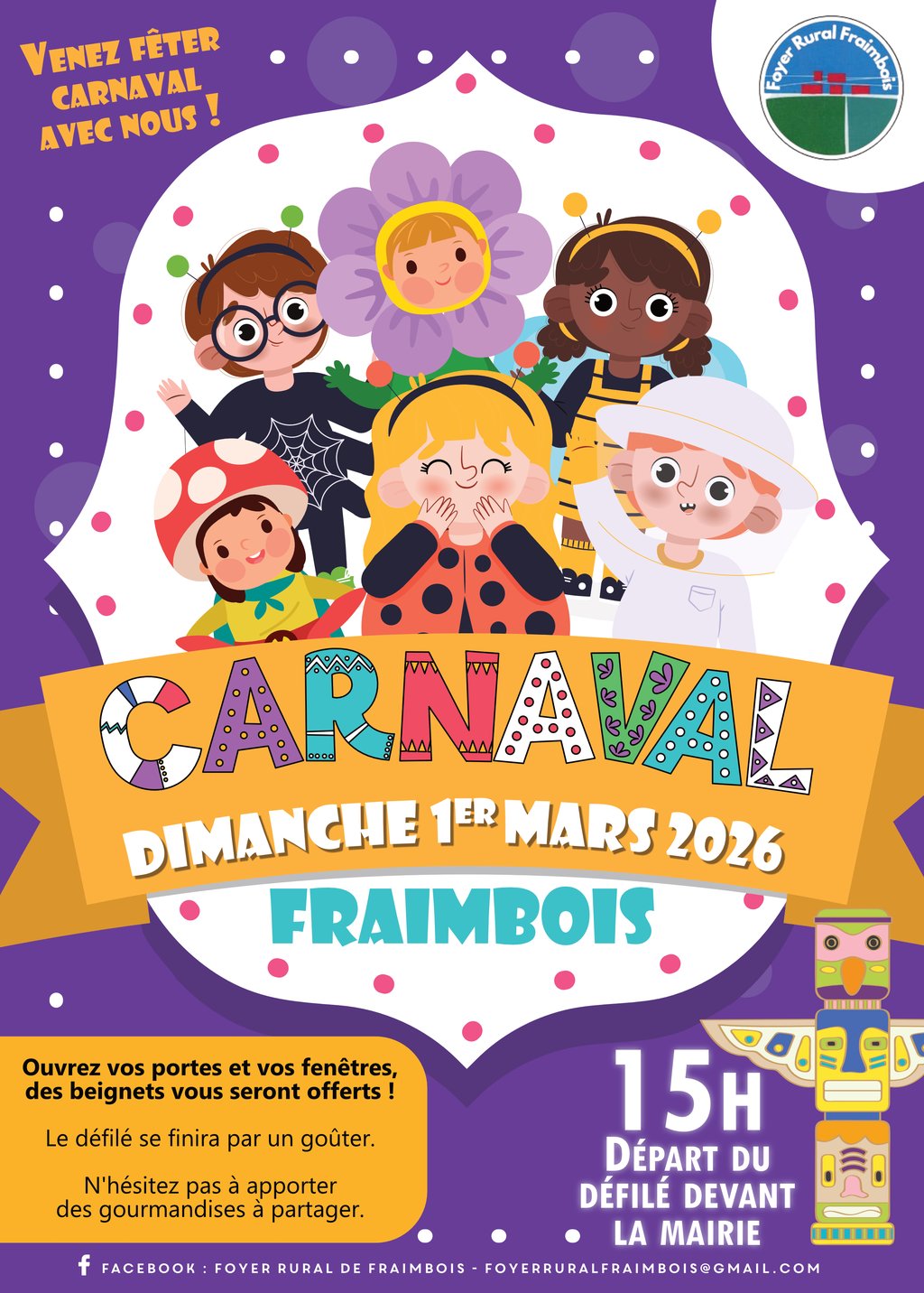 Les enfants sont invités à venir défiler déguisés dans les rues du village dimanche 1er mars à 15h, rendez-vous devant la mairie !