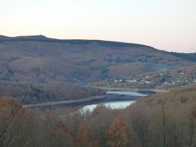 Aire de pique-nique ombragée en surplomb du lac du Laouzas, vue sur le lac et possibilité de se garer non loin.
