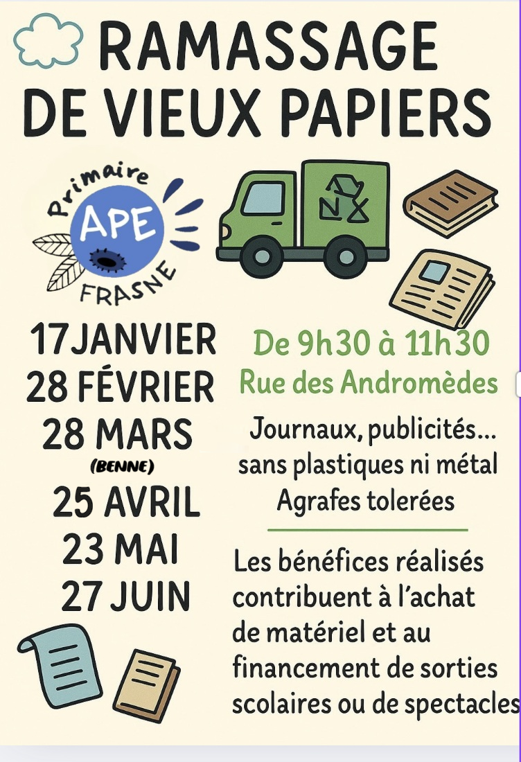 Pour rappel, ceci est une action pour financer les projets de l'école primaire de Frasne.