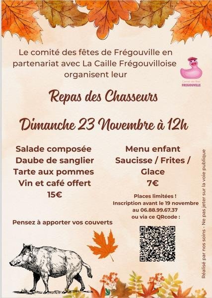 Le Comité des fêtes de Frégouville et la Caille Frégouvilloise organisent leur repas des chasseurs.