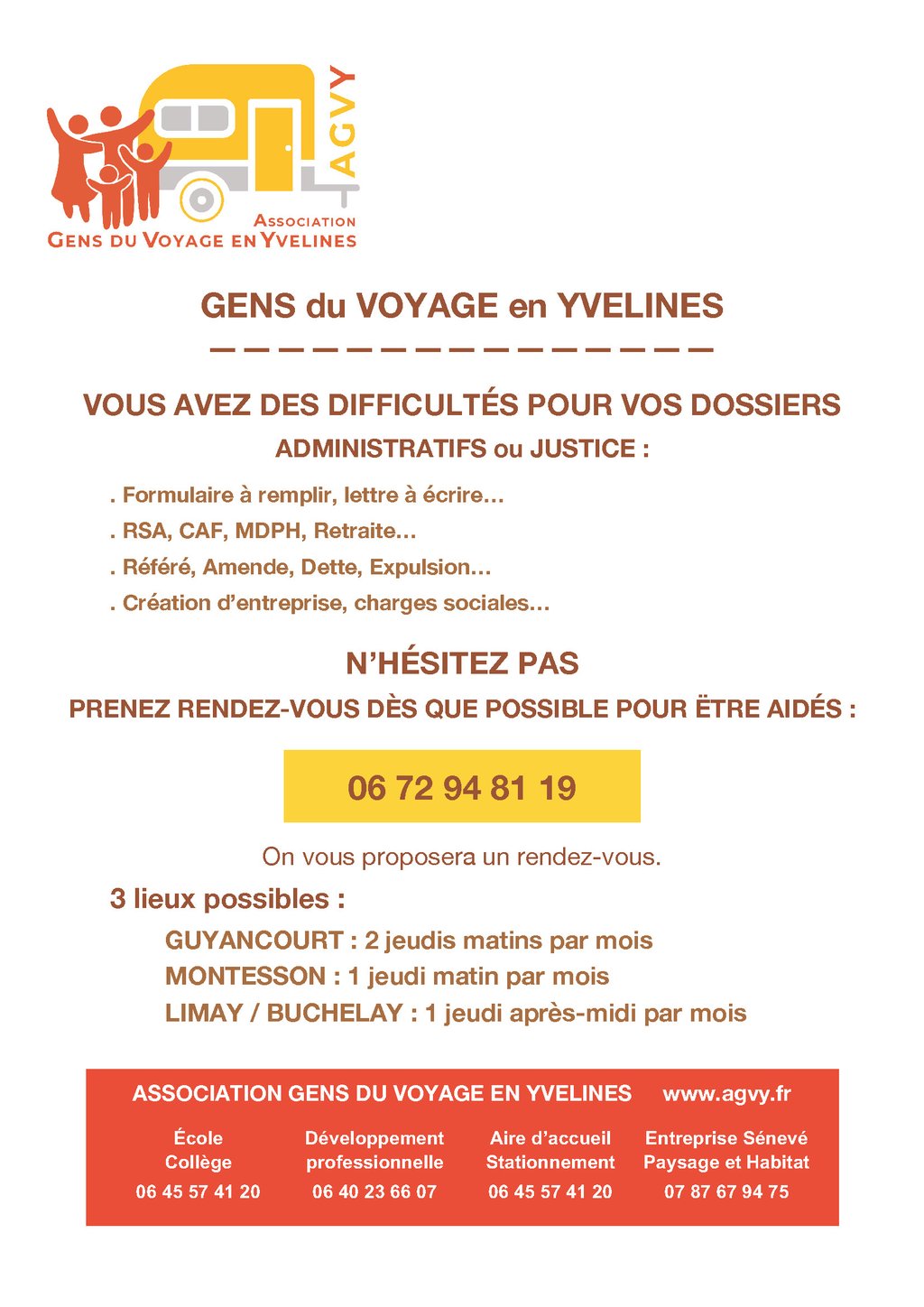 L’Association Gens du Voyage en Yvelines a mis en place des permanences d’accès aux droits (financées par la DDETS) pour aider les gens du voyage dans les documents administratifs :