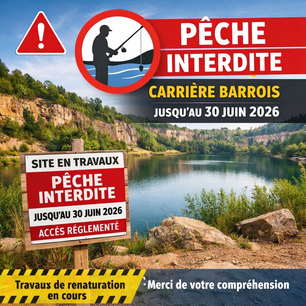 Par arrêté municipal n°2026/06 du 4 février 2026, la pratique de la pêche est interdite sur l’ensemble du site de la carrière Barrois à compter de la publication de l’arrêté et jusqu’au 30 juin 2026 inclus.