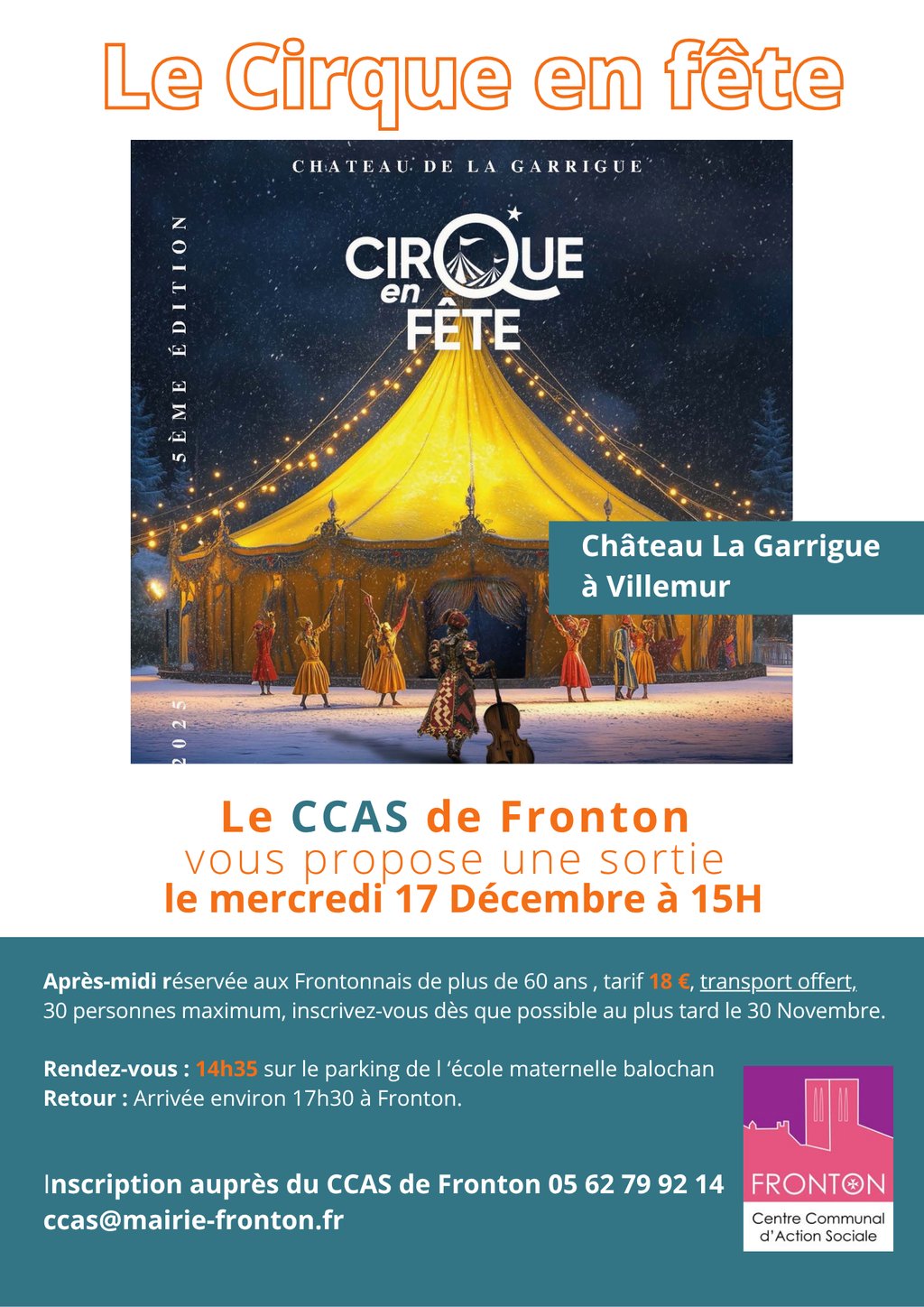Le CCAS de Fronton vous propose une sortie le mercredi 17 décembre à 15H,