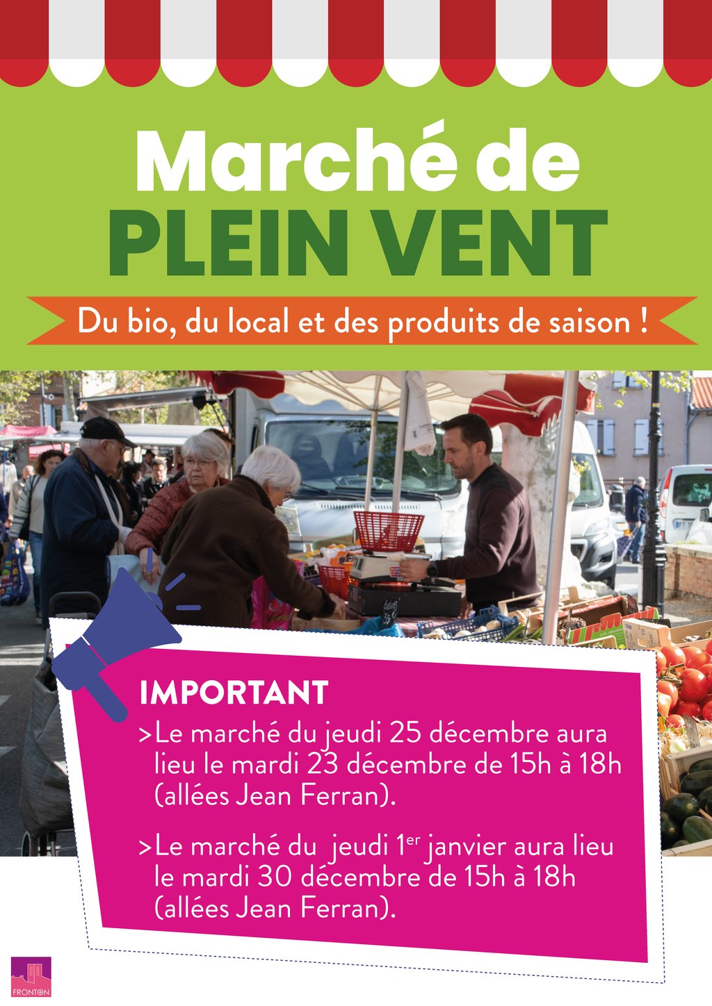 Afin que chacun puisse profiter pleinement des fĂȘtes, les marchĂ©s initialement prĂ©vus les jeudi 25 dĂ©cembre et jeudi 1er janvier sont exceptionnellement reportĂ©s :