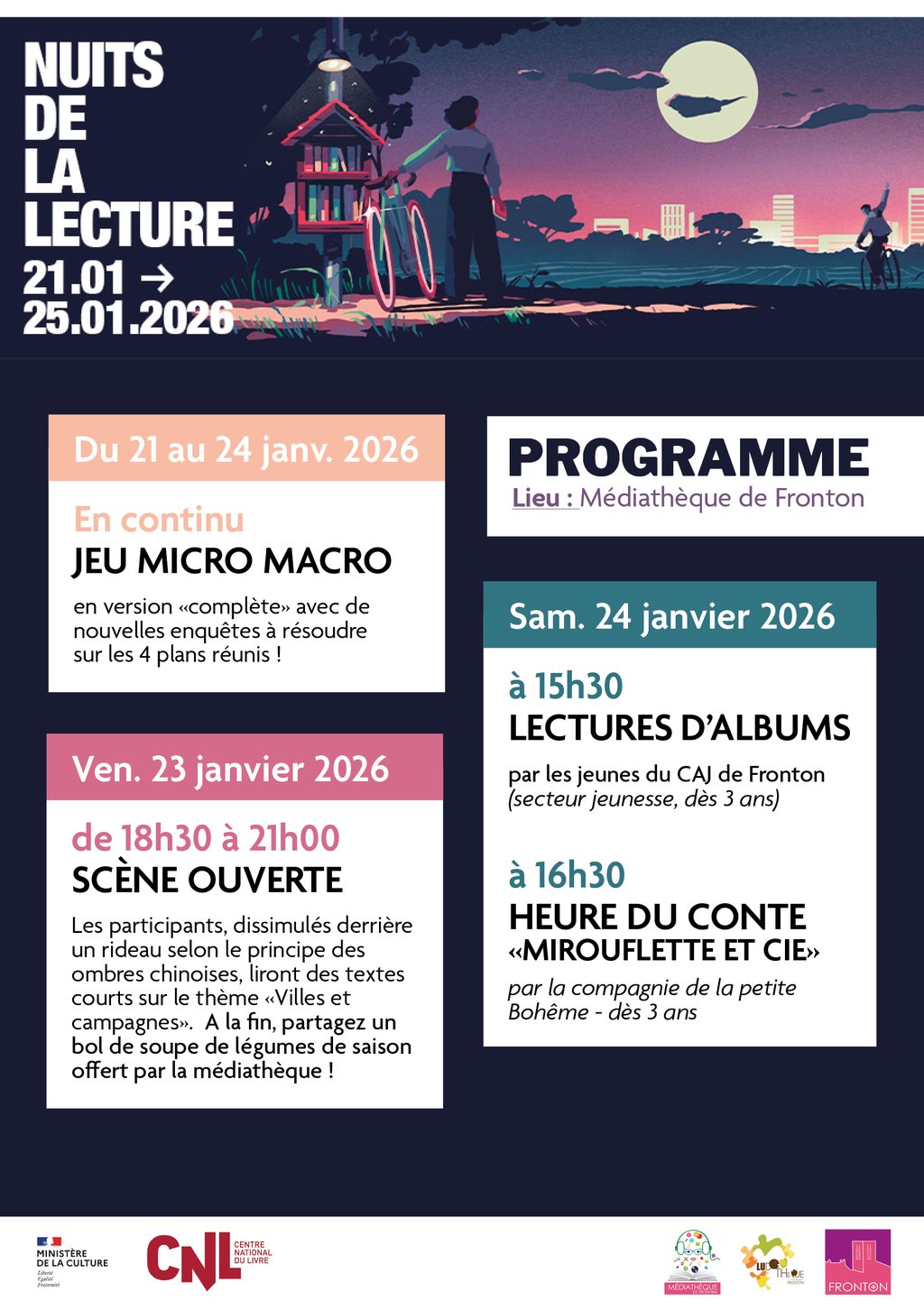 LES NUITS DE LA LECTURE À LA MÉDIATHÈQUE DE FRONTON / 21-24 JANV.