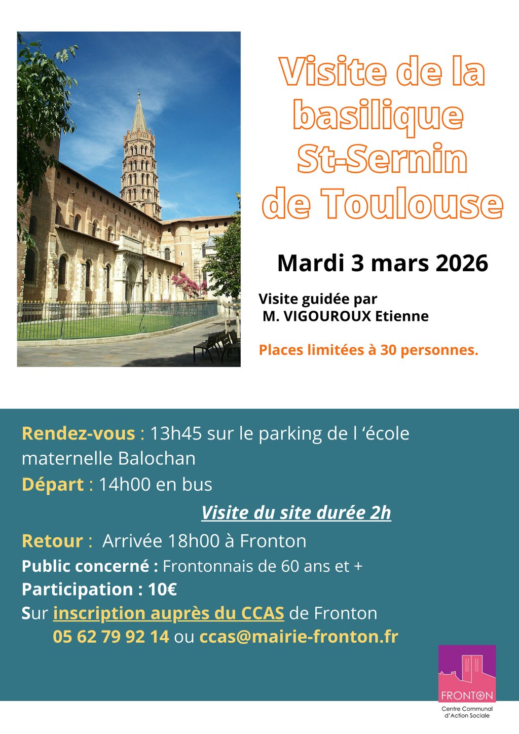 Le CCAS de Fronton propose aux Frontonnais de plus de 60 ans une visite Guidée de la Basilisque St Sernin de Toulouse