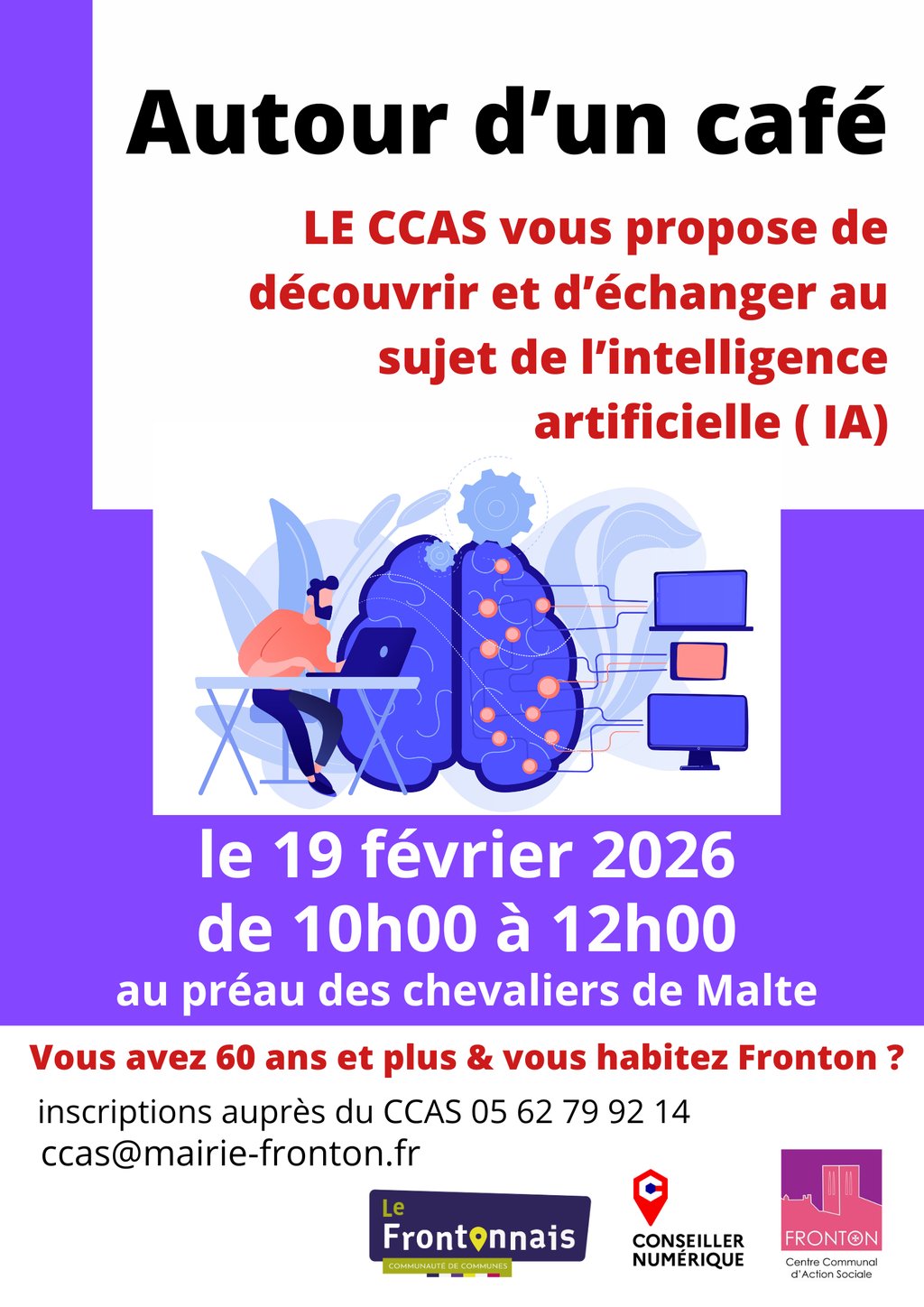 Laurie SELVE et le C.C.A.S. de Fronton vous invitent à un moment convivial pour découvrir l’intelligence artificielle en toute simplicité.