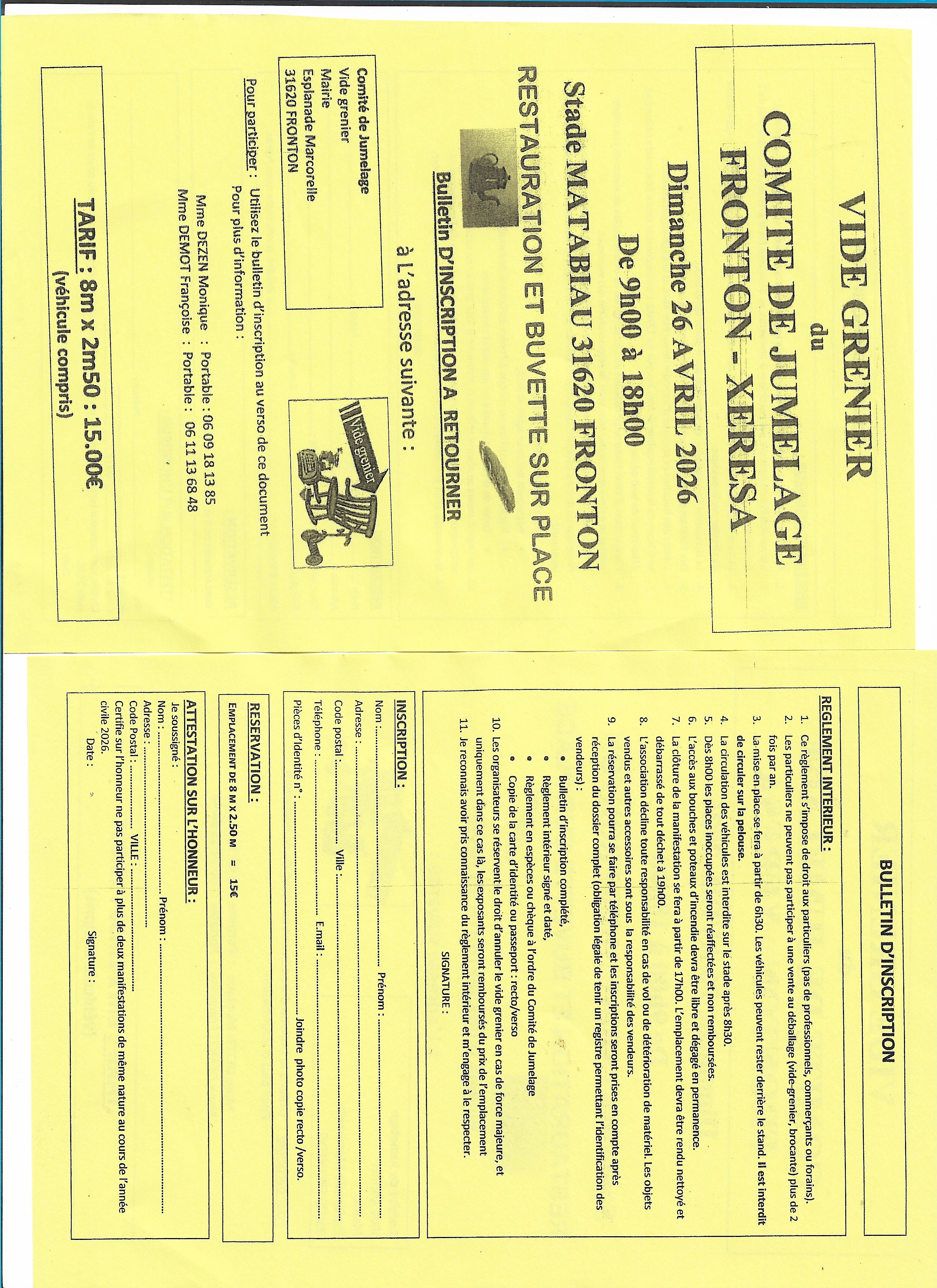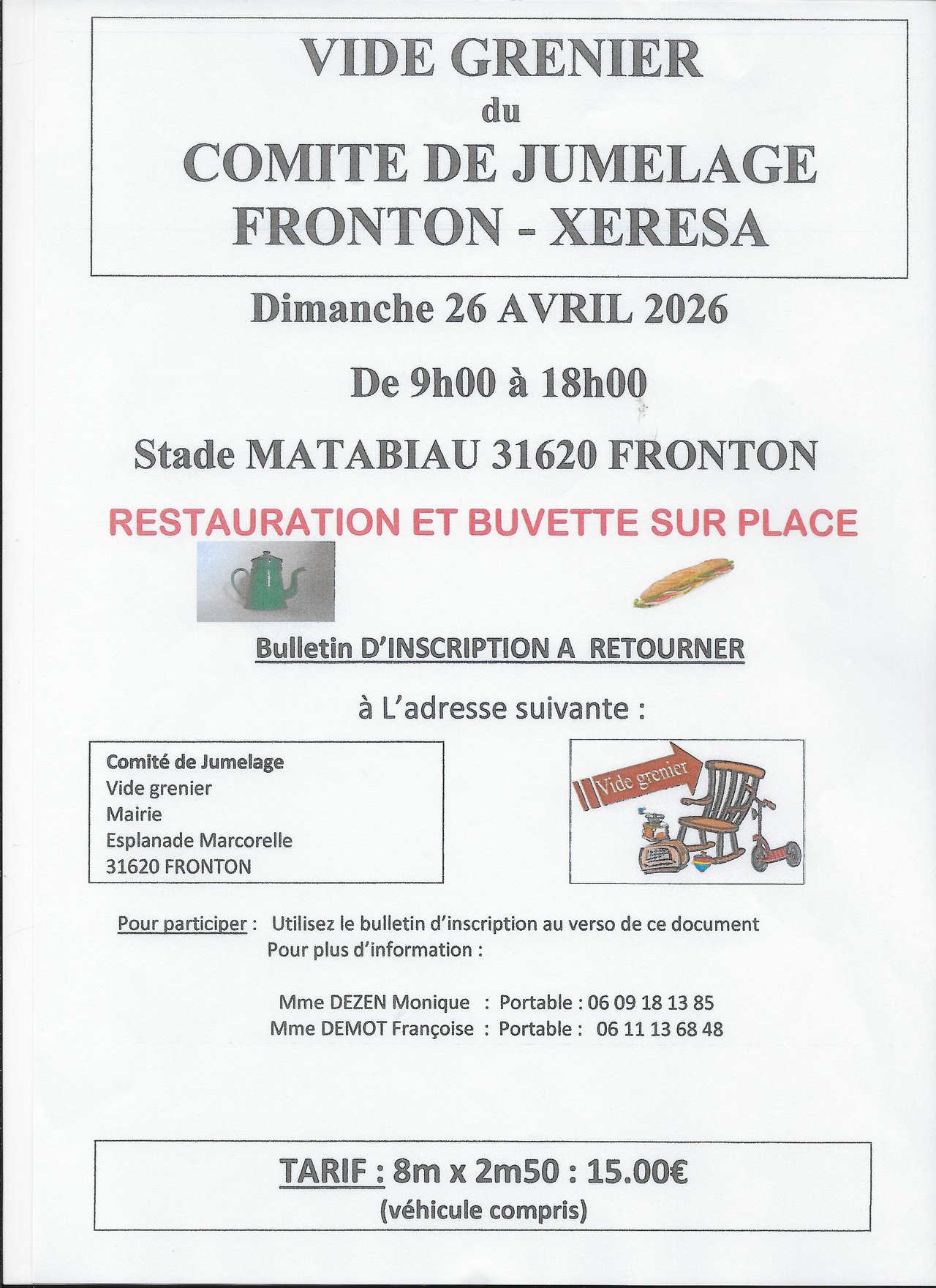 Le Comité de Jumelage organise un vide-grenier le dimanche 26 avril 26 au stade Matabiau à Fronton.