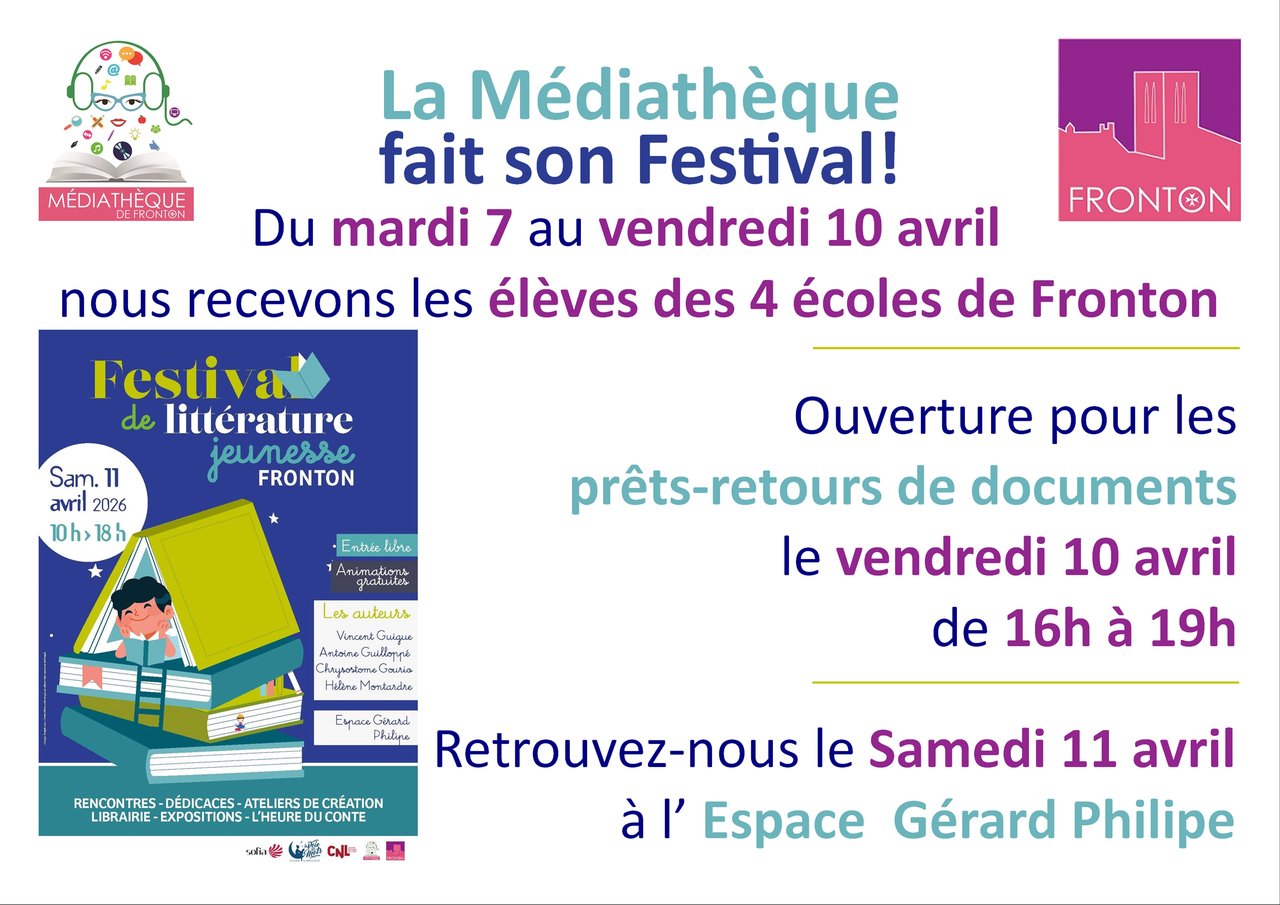 LA MÉDIATHÈQUE FAIT SON FESTIVAL ! SON FONCTIONNEMENT SERA PERTURBÉ DU 7 AU 11 AVRIL