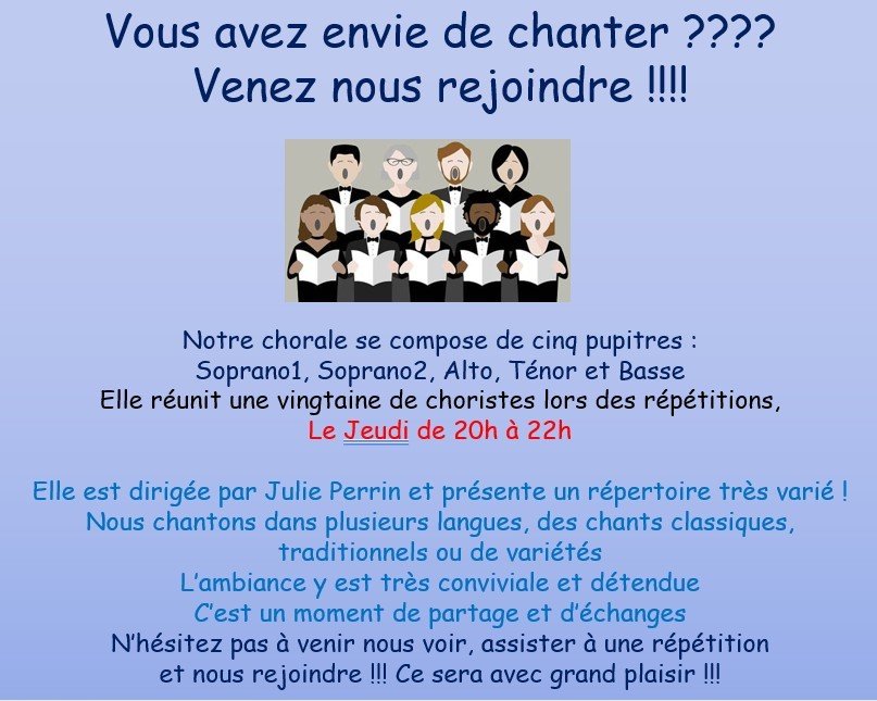 Association ayant pour but de regrouper les personnes désirant chanter et contribuer au développement culturel et musical de notre région.