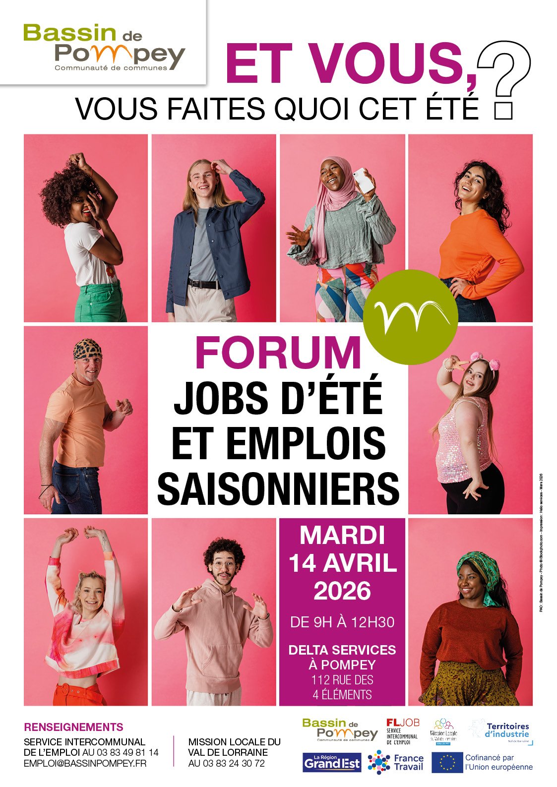 Bassin de Pompey et la Mission Locale Val de Lorraine, en partenariat avec France Travail, organisent un forum spécial jobs d’été et emploi saisonniers