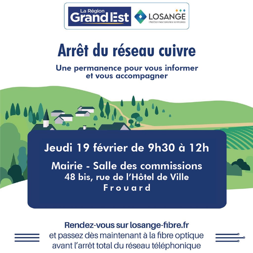 Dans le cadre du programme national d’arrêt du réseau cuivre, une permanence d’information est organisée en mairie afin d’accompagner les habitants dans cette transition vers la fibre optique.