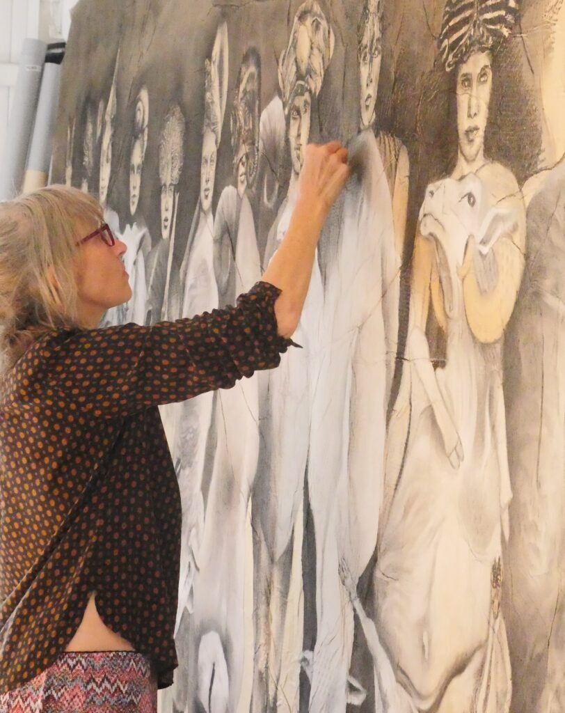 Peintre, dessinatrice, Mylène Besson a collaboré avec plusieurs poètes, dont Michel Butor, Bernard Noël, Pierre Bourgeade, Fernando Arrabal…réalisant ainsi plus de 150 livres d’artistes. De nombreuses expositions, missions, résidences, jalonnent son parcours en France et en Europe mais aussi à l’étranger (Sénégal, Congo/Brazzaville, Bulgarie, Albanie, Maroc). Sa peinture est profondément incarnée, humaine, engagée, comme en témoignent les séries de grands dessins à l’échelle 1 entrepris depuis 2012. Son dessin vit de la matière de son papier marouflé et du désir qui l’anime, la traverse. « Peindre, dessiner c’est agir… c’est transformer le contact, le frottement de mon corps au monde. ».