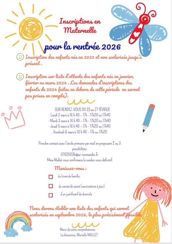 INSCRIPTION EN MATERNELLE RENTRÉE 2026