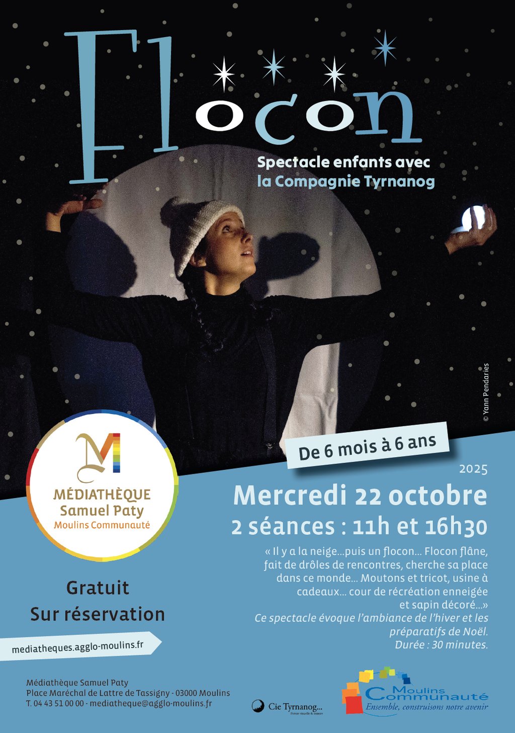 Les petits de 6 mois à 6 ans, pourrons profiter d'un spectacle jeunesse par la compagnie Tyrnanog, le mercredi 22 octobre à la médiathèque Samuel Paty.