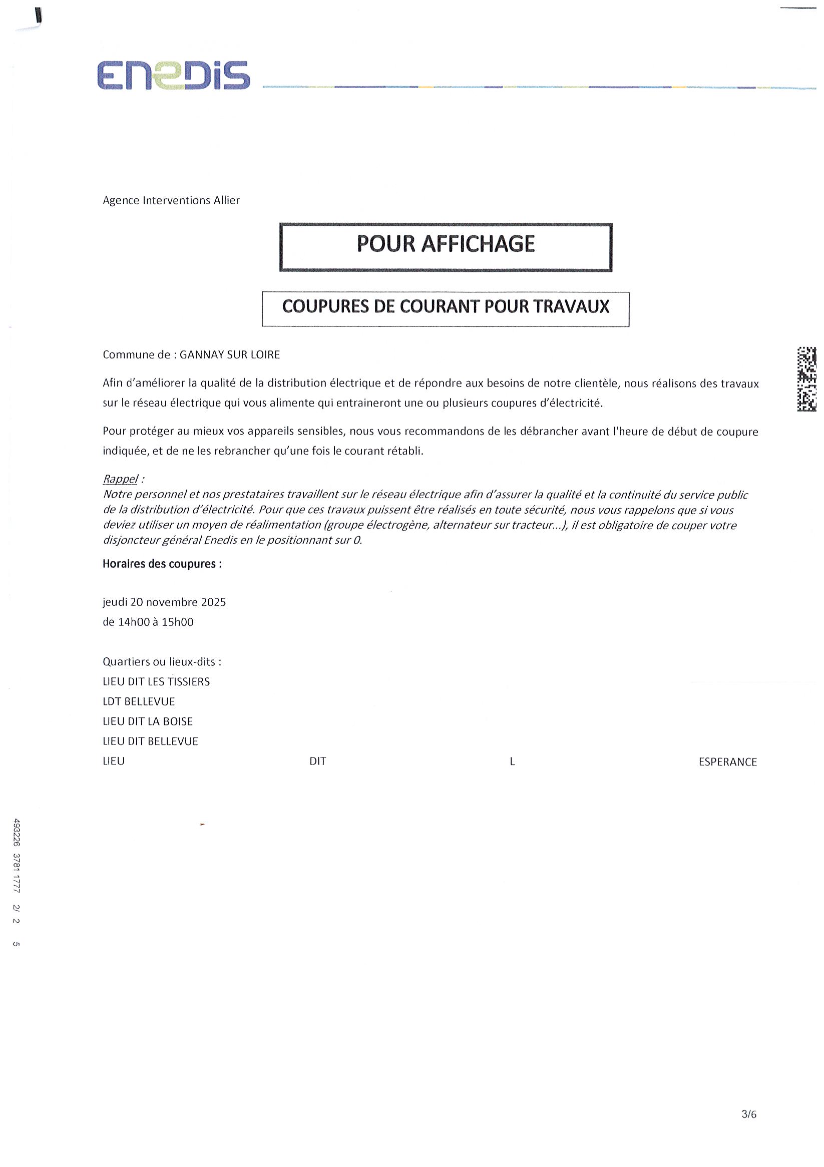 COUPURES DE COURANT POUR TRAVAUX
