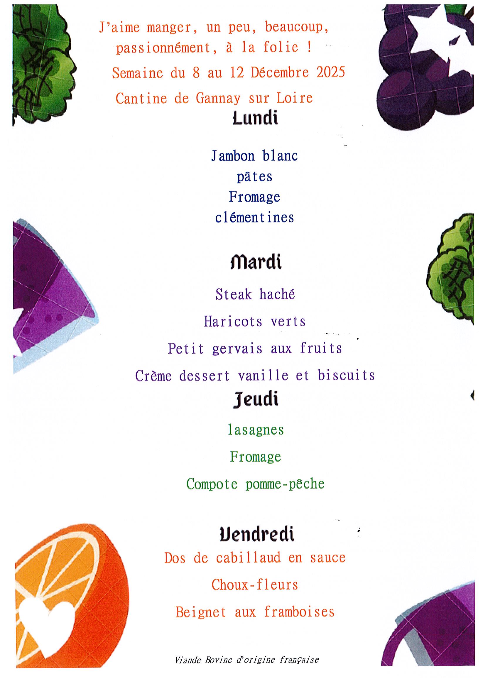 MENU CANTINE SEMAINE DU 8 AU 12 DÉCEM...