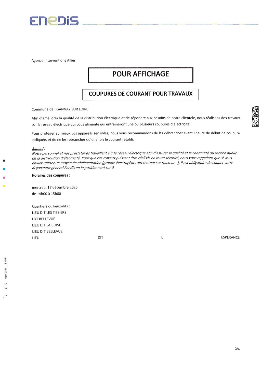 COUPURES DE COURANT POUR TRAVAUX