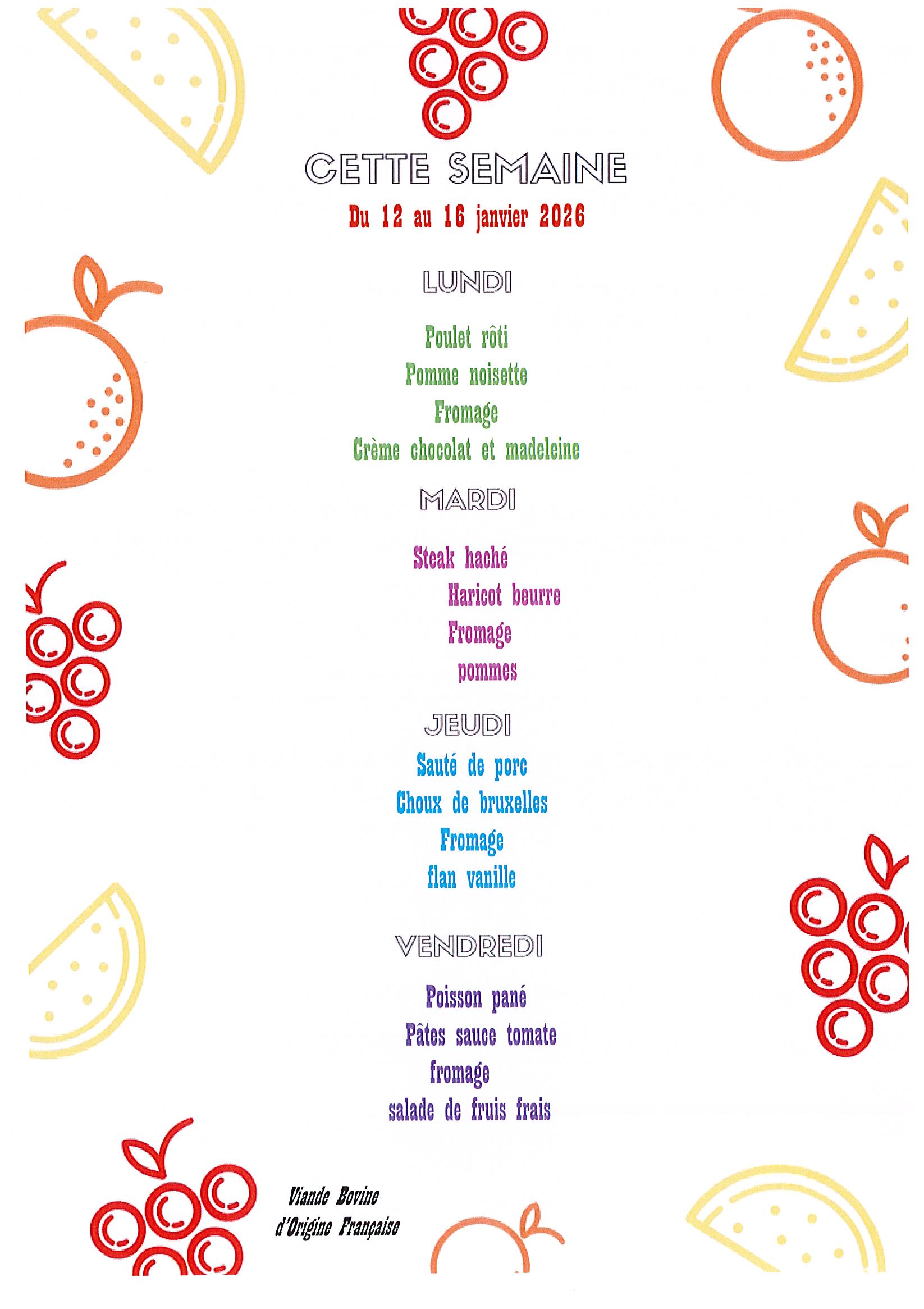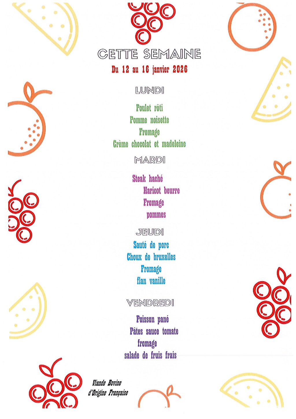 MENU CANTINE DU 12 AU 16 JANVIER 2026
