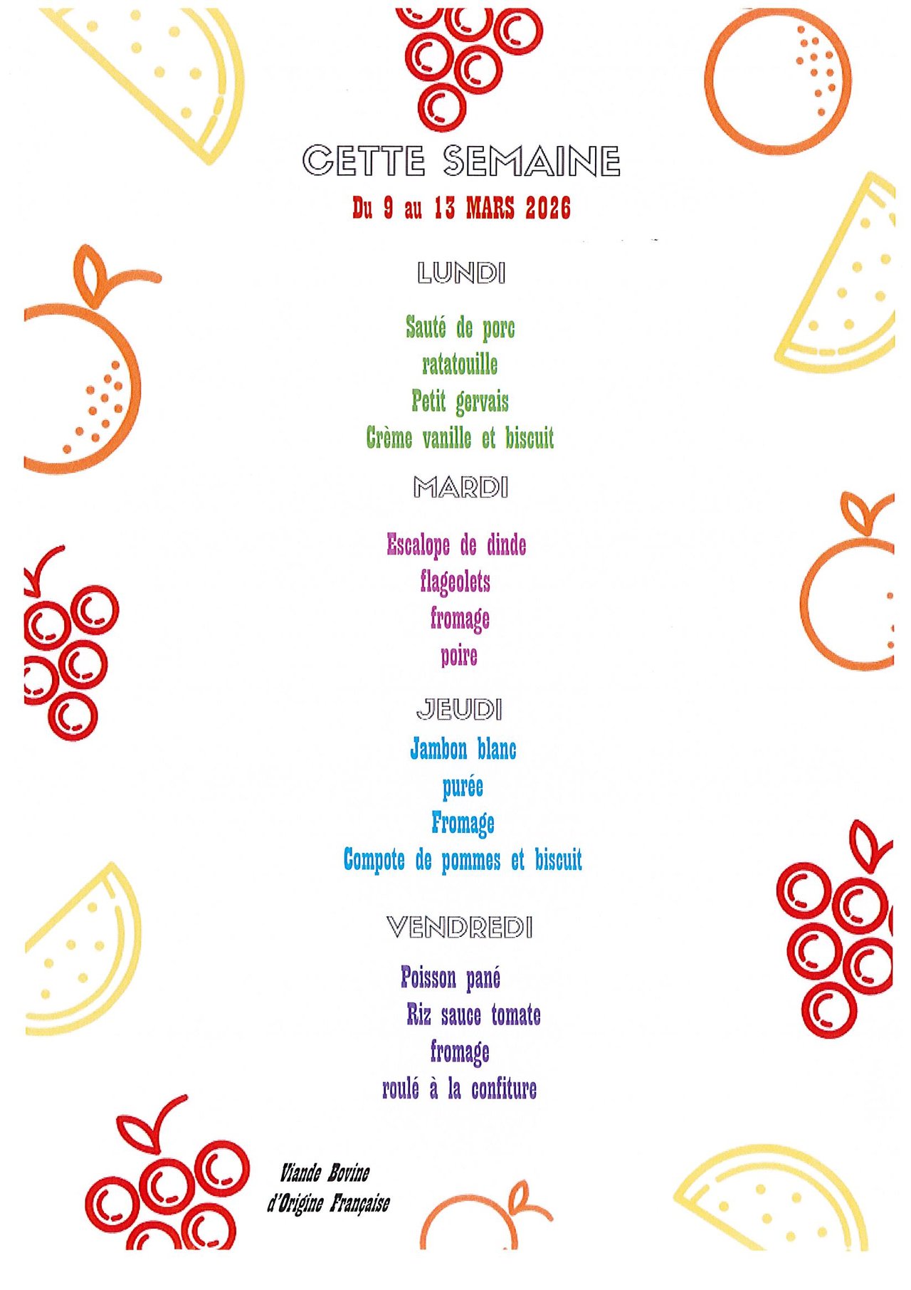 MENU CANTINE SEMAINE DU 9 AU 13 MARS ...
