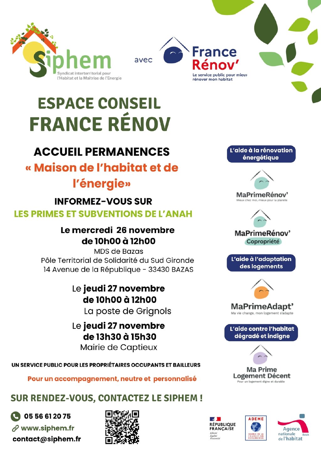 Voici les permanences du SIPHEM pour le mois de novembre !