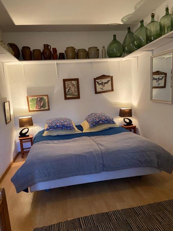 Gîte confortable et calme, pouvant accueillir 10 voyageurs grâce à la chambre dortoir. Les trois chambres disposant de leur salle d'eau privée assurent plus de confort pour une longue durée à trois couples. Juchée au sommet de la colline. La maison tout en longueur a conservé ses murs en briques et pierres apparentes, son sol en carreaux de terre cuite. Ce mélange de charme et de rusticité faisant toute son ambiance ! Le platane tricentenaire déploie son ombre lénifiante.