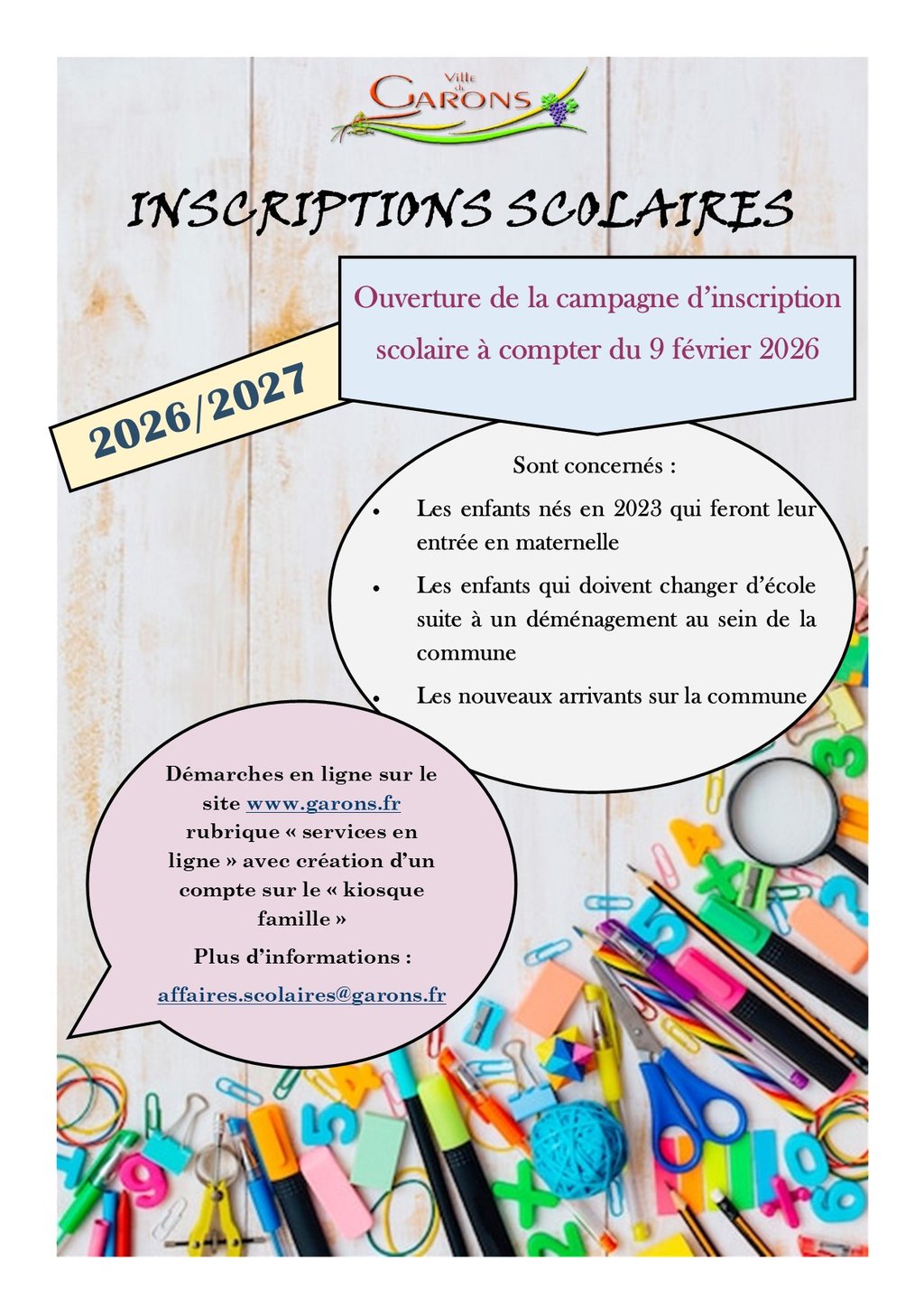 INSCRIPTIONS SCOLAIRES 2026/2027