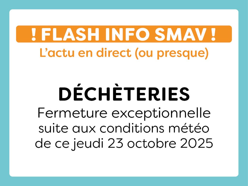 Frédéric Hodent, Directeur Général des Services, en lien avec le Service Collecte, tient à vous informer que nos déchèteries seront exceptionnellement fermées ce jeudi 23 octobre 2025 en raison des fortes rafales de vent actuellement en cours. Un post sur les réseaux sociaux est également prévu à cet effet.