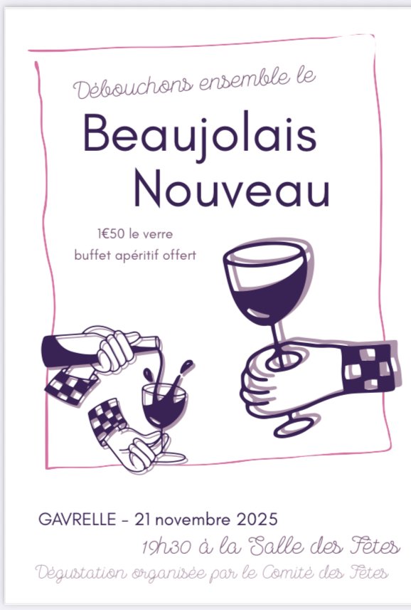 Le Comité des Fêtes de Gavrelle vous invite à déguster avec vous le Beaujolais Nouveau