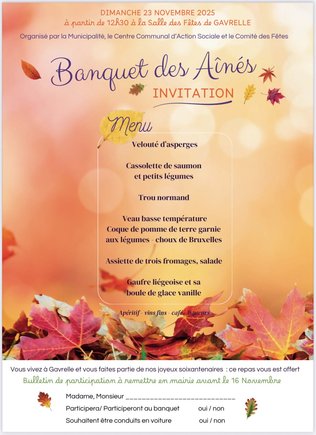 Gratuit uniquement si vous êtes Gavrellois et faites partie de nos joyeux soixantenaires 😊